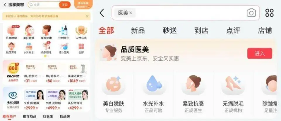 ▲ 美团和京东都开始布局医美